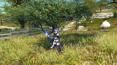 ラノシアのオレンジ畑(地権者不明)で革細工用のアースシャードを採取してます。
