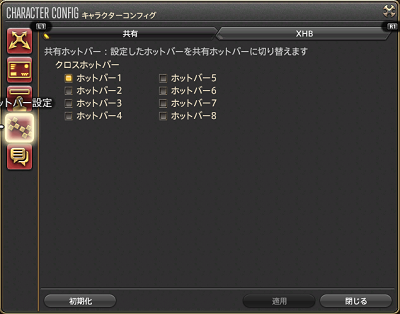 ※XHBの設定は「システムメニュー」→「キャラクターコンフィグ」→「ホットバー設定」で行います。